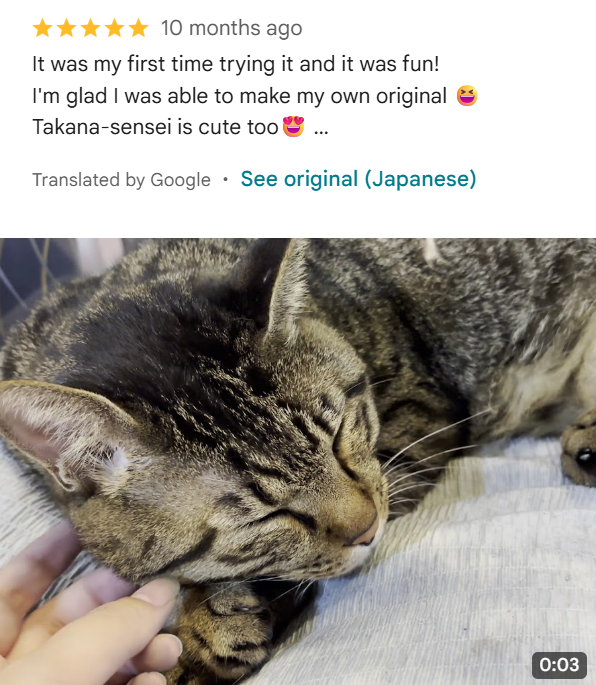 Our studio is home to four rescue cats, including our namesake Sensei Takana, the beloved “teacher” cat. Relax and create alongside these friendly companions.