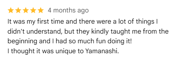 We’re grateful to have received wonderful feedback from visitors to Takana Sensei’s Yamanashi Wine Dyeing Workshop. Here are just a few of the kind words shared by our guests: