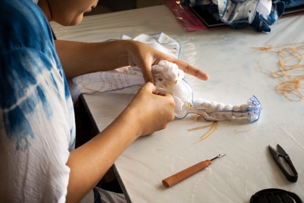 We use natural indigo and pumice dyes, offering an environmentally conscious craft experience that celebrates the gifts of nature.